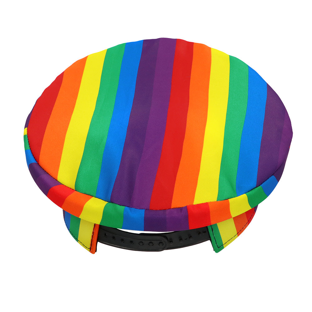 Fällt auf mit der bunten Regenbogen-Kapitänsmütze Gordon. Die auffälligen Regenbogenstreifen, goldenen Details und Embleme verleihen der Kappe einen verspielten und coolen Look. Perfekt als Accessoire für Pride, Festivals, Mottopartys oder Karneval.