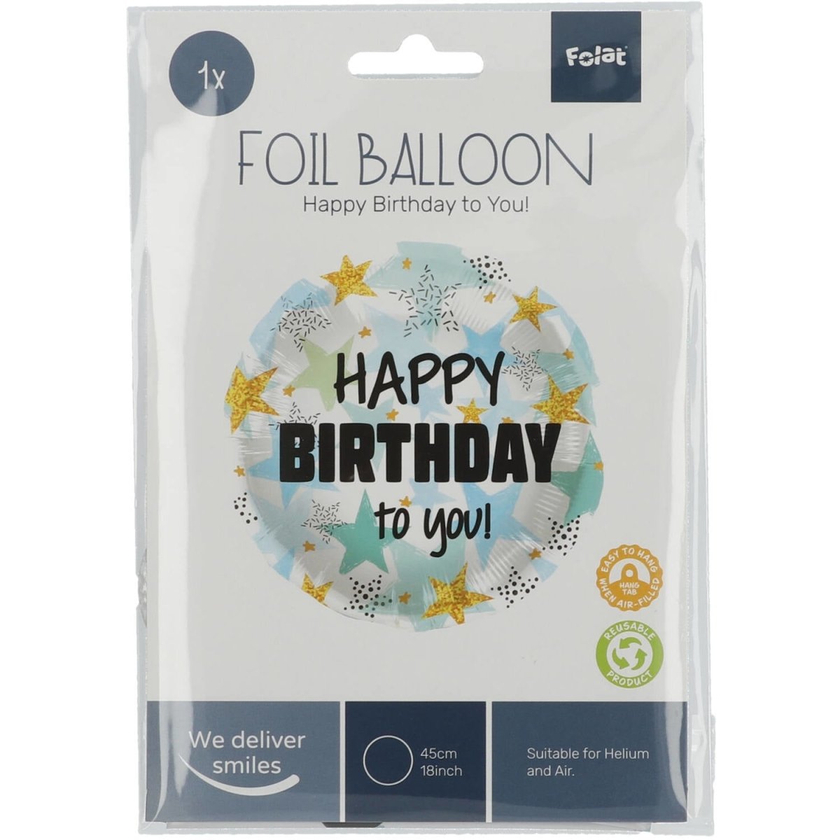 Folienballon Birthday Stars Blau/Gold - 45 cm. Inhalt: 1 Folienballon. Farbe: Mehrfarbig. Kann zum Beispiel für folgende Anlässe verwendet werden: Geburtstag und Kinderfest. Dieser Folienballon ist 18 Zoll/45 cm groß. Der Artikel ist aus Folie hergestellt.