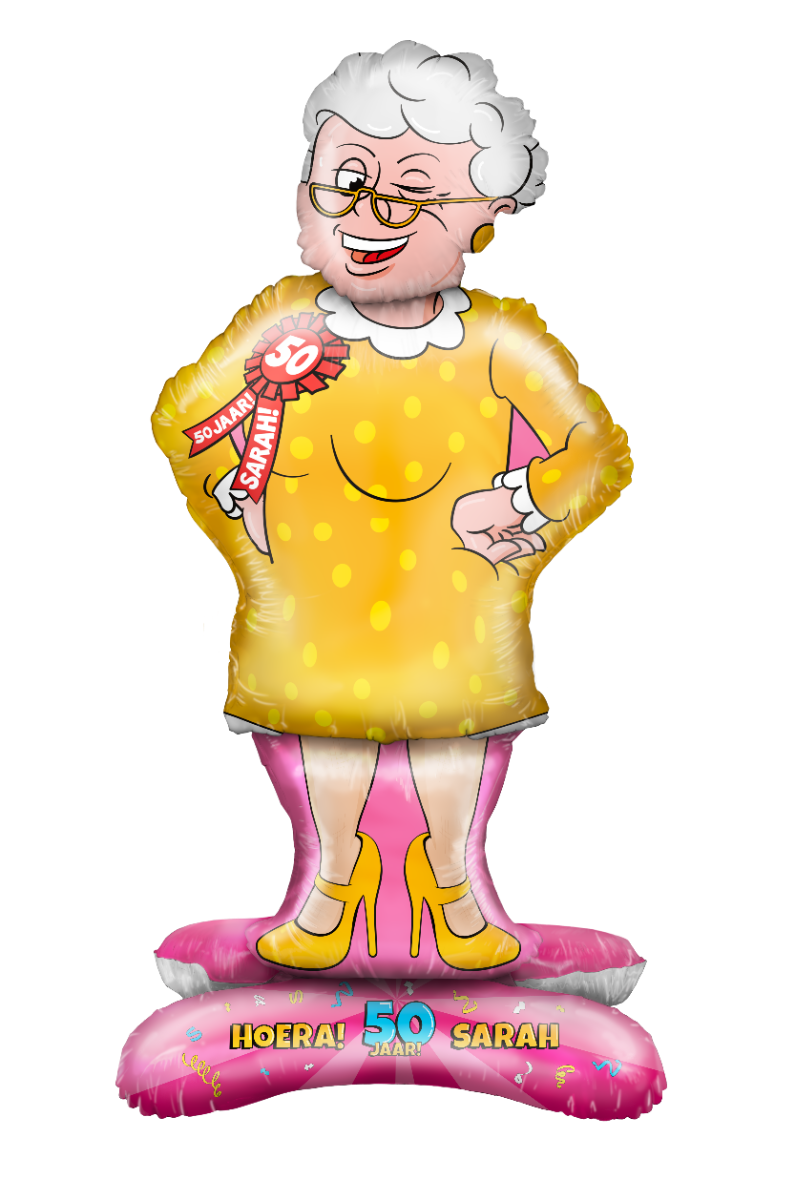 Mach den 50. Geburtstag besonders festlich mit dieser auffälligen Folienballonpuppe Sarah 50. Dank ihrer kompakten Größe lässt sich der Ballon leicht aufblasen, absetzen oder aufhängen - ganz ohne Aufwand. Perfekt als Dekoration auf einer Sarah & Abraham Party.