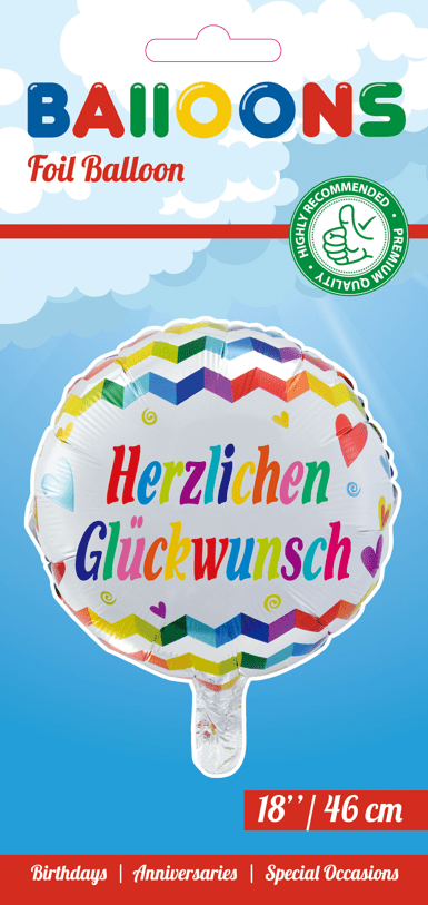Heliumballon Herzlichen Glückwunsch 45cm leer