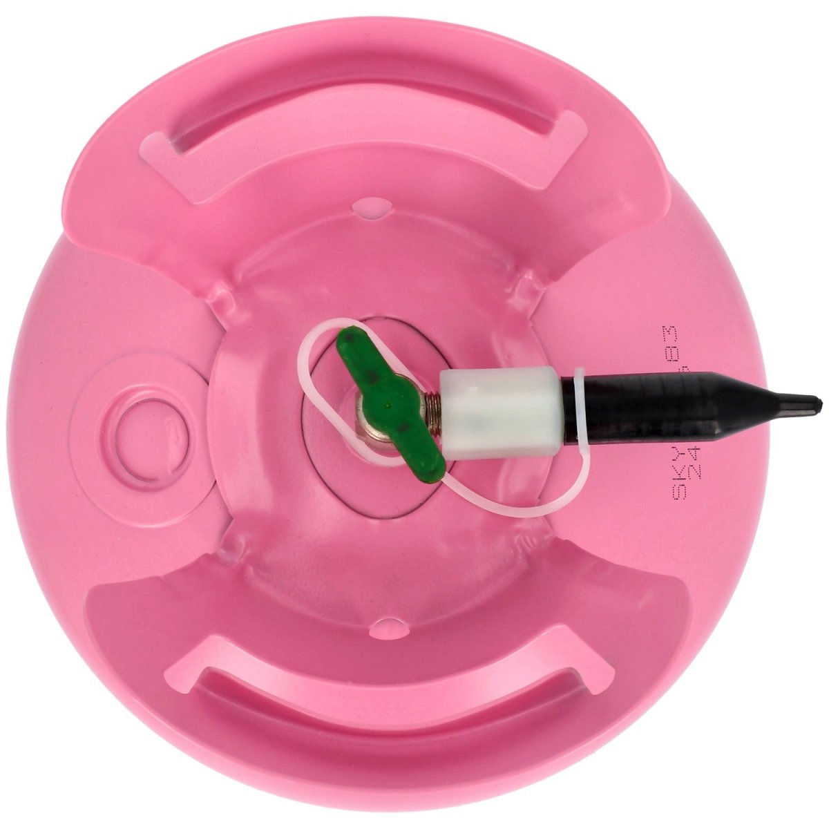2. Drücke die schwarze Tülle nach unten, der Ballon füllt sich mit Helium. Lass die Tülle los, um das Füllen zu stoppen.