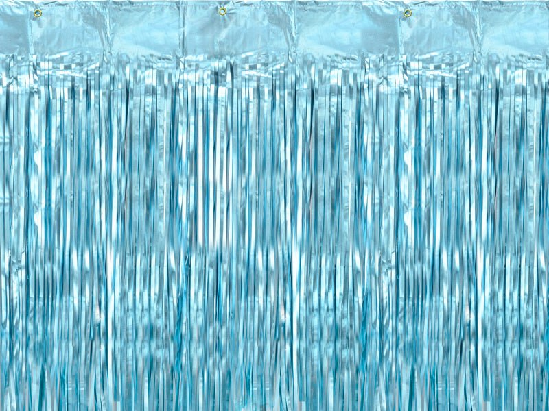 Inhalt: Partyvorhang in metallisch blauer Farbe, Breite ca. 90 cm, Höhe ca. 250 cm.