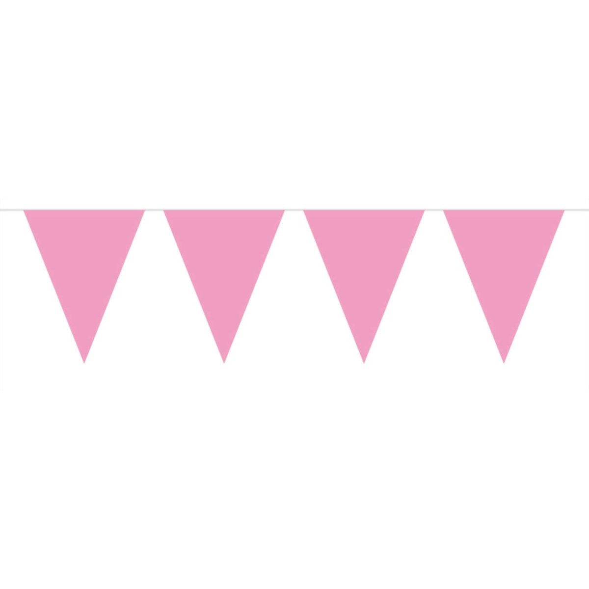 Baby Pink Flagline - 10 Meter. Inhalt: 1 Fahnenleine von 10 Metern. Farbe: Rosa. Hänge diese Fahnenleine z.B. bei einem Geburtstag, einer Kinderparty oder bei der Geburt eines Mädchens auf. Diese Girlande ist 10 Meter lang. Sie ist beidseitig bedruckt und besteht aus 15 Fähnchen von 29 cm. Die Fahnenleine ist aus Kunststoff hergestellt.