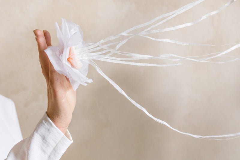Das Set besteht aus 10 Papierblumen, von denen jede elegant bunte Girlanden enthält. Diese handgeknüpften Luftschlangen sind die perfekte Ergänzung für jede Party oder Feier und sorgen für ein farbenfrohes und unvergessliches Erlebnis. Ein kräftiger Wink mit der Hand genügt, um eine Kaskade von Luftschlangen freizugeben. Die Blumen haben einen Durchmesser von ca. 7,5 cm.