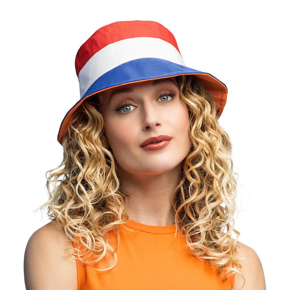 Der Bucket hat Holland ist ein stilvoller und praktischer Hut in rot-weiß-blau, der dich ganz im holländischen Geist erscheinen lässt. Dank seiner bequemen Passform und leichten Materialien ist er ideal für den Königstag, Sportwettkämpfe und Feste.
