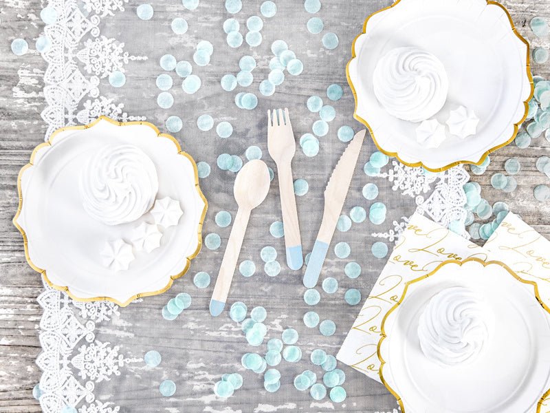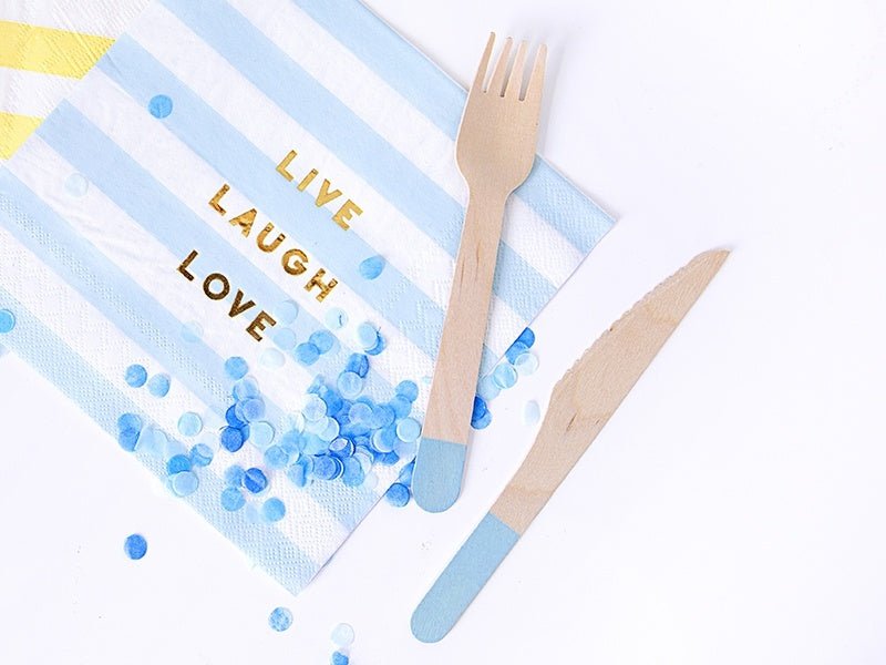 Beschreibung Bewertungen Über dieses Produkt Verpackungsinhalt:Holzbesteck Hellblau 16cm 18 StückAnzahl: 18 StückLänge: 16cmInhalt: 6 Löffel, 6 Messer und 6 GabelnFarbe: HellblauMaterial: Holz Trustpilot