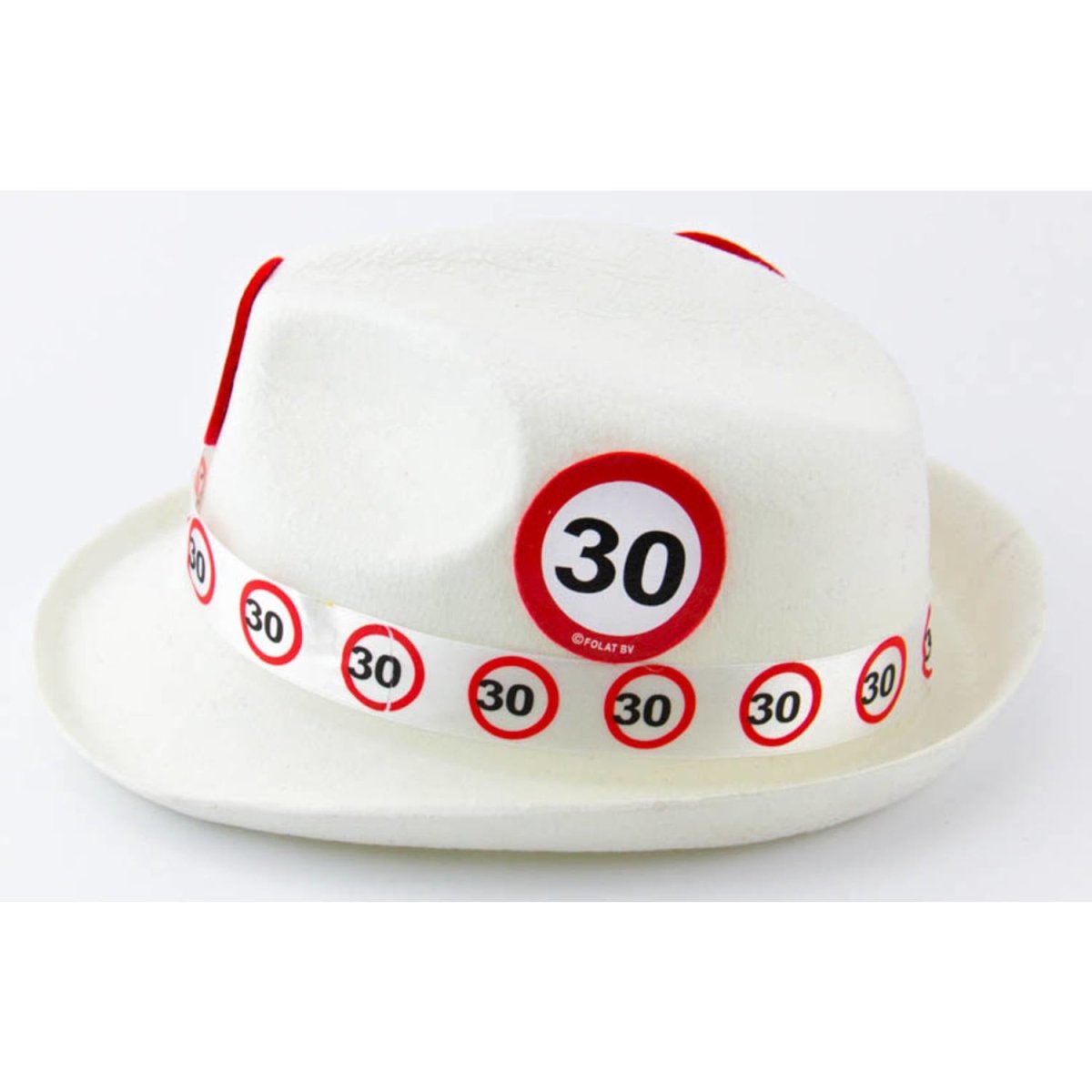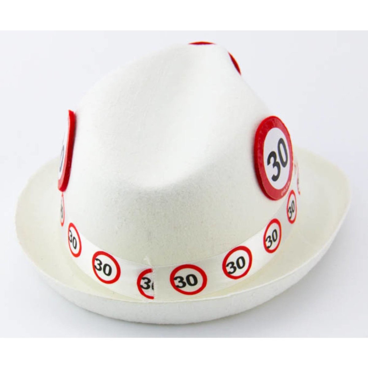 30 Jahre Verkehrszeichen Trilby Hut Weiß. Inhalt: 1 Hut, Farbe: Weiß. Zum Beispiel für die folgenden Anlässe zu verwenden: Karneval, Mottoparty, Halloween. Dieser Hut ist 23 cm breit und 37 cm hoch. Der Artikel ist aus Polyester hergestellt.