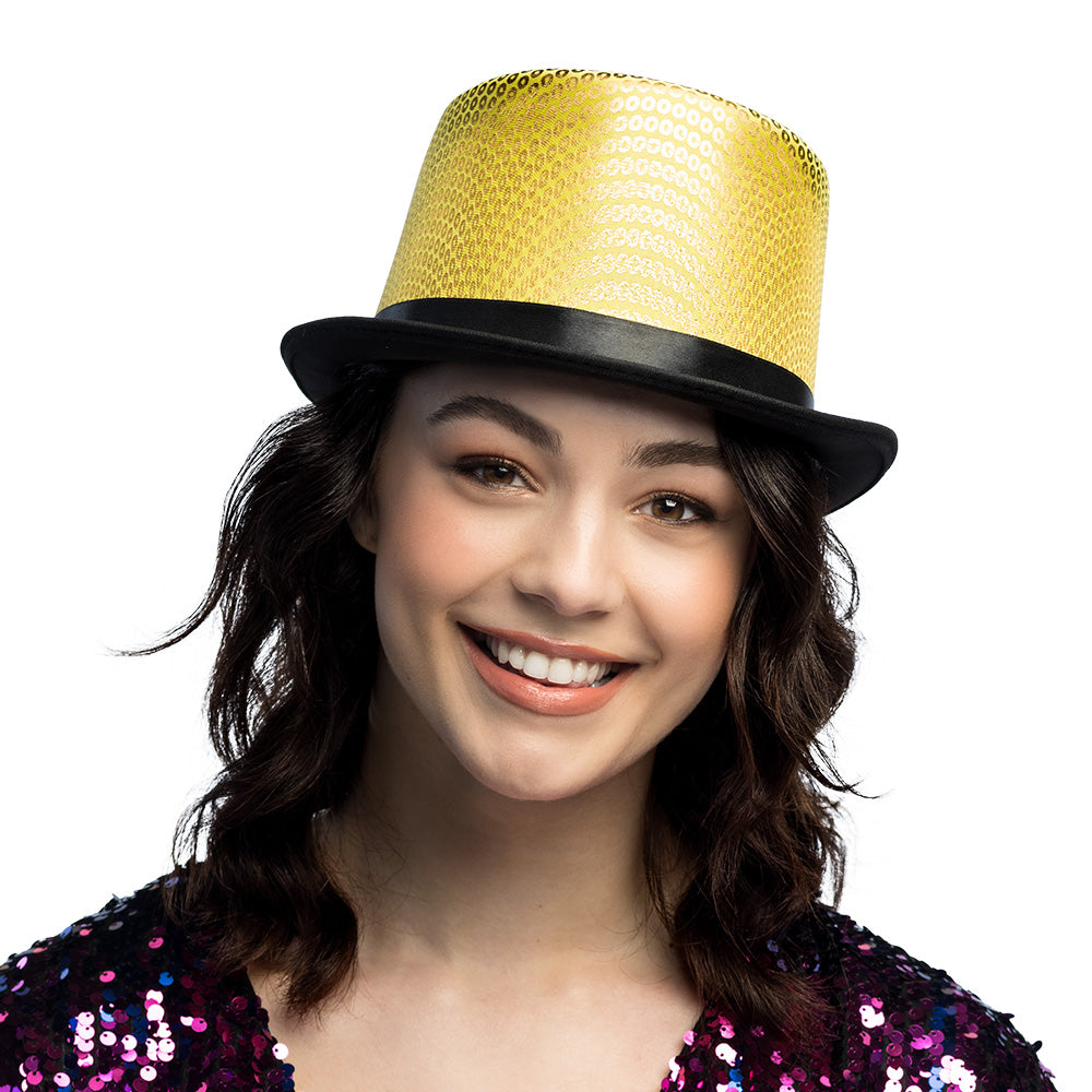 Gib deinem Outfit einen spektakulären Schub mit dem Hut Caprice Gold. Dieser auffällige Zylinder ist perfekt, um die Tanzfläche im Karneval zu erobern, einen Auftritt zu geben oder das neue Jahr stilvoll einzuläuten.