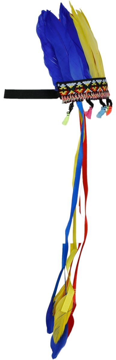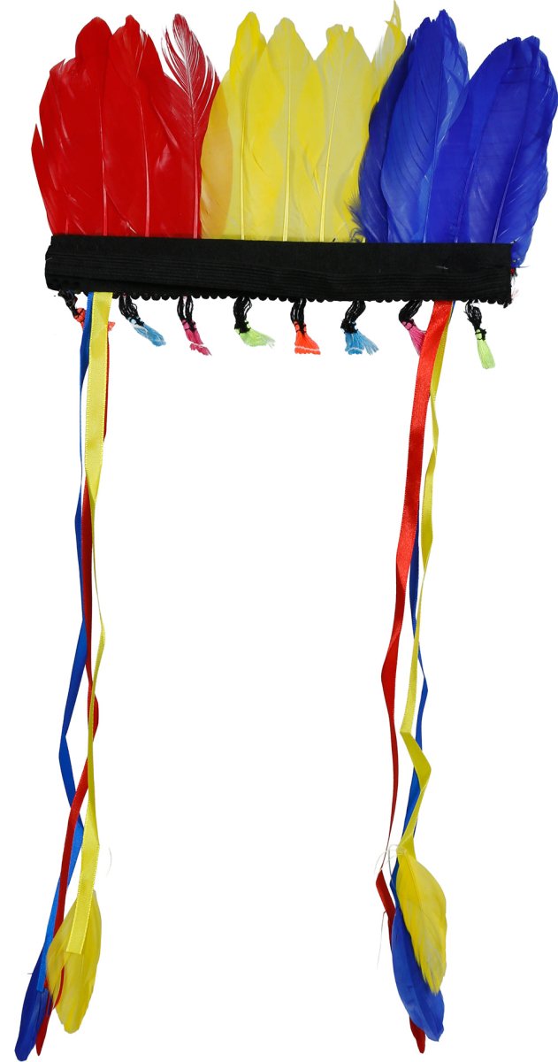 Bunte Federn in Gelb, Blau und Rot, ideal zum Anbringen an einem Hut oder als Accessoire. Perfekt für Mottopartys, Festivals oder Faschingspartys.