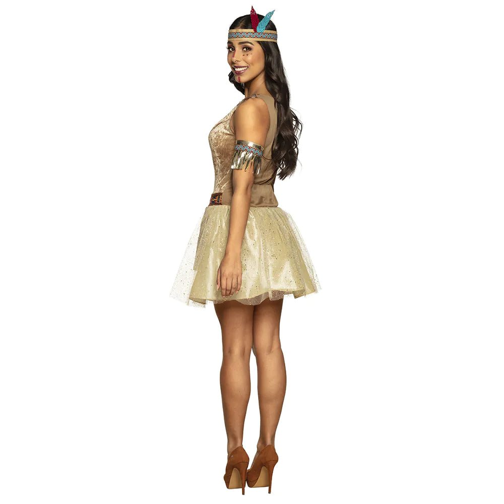 Dieses wunderschöne Bright Hawk Kostüm für Erwachsene ist das perfekte Outfit für alle Frauen, die sich an Karneval oder auf einer Faschingsparty verkleiden und dabei stilvoll aussehen wollen. Dieses schöne verspielte Kostüm besteht aus einem schönen kurzen Kleid aus weichem Stoff mit einem Tüllrock und einem braunen Lendenschurz, der mit einem Eingeborenenmotiv verziert ist, einem goldfarbenen Armband mit Fransen und um das Outfit zu vervollständigen einem Stirnband mit Federn.