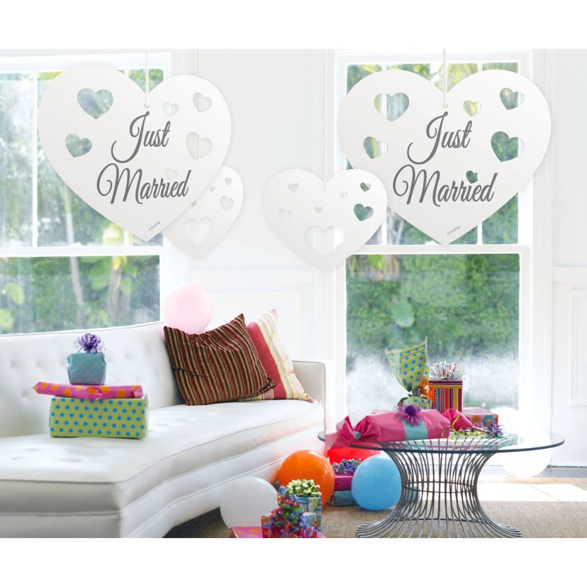 Just Married Hängende Dekoration Set Herzen 5 Stück