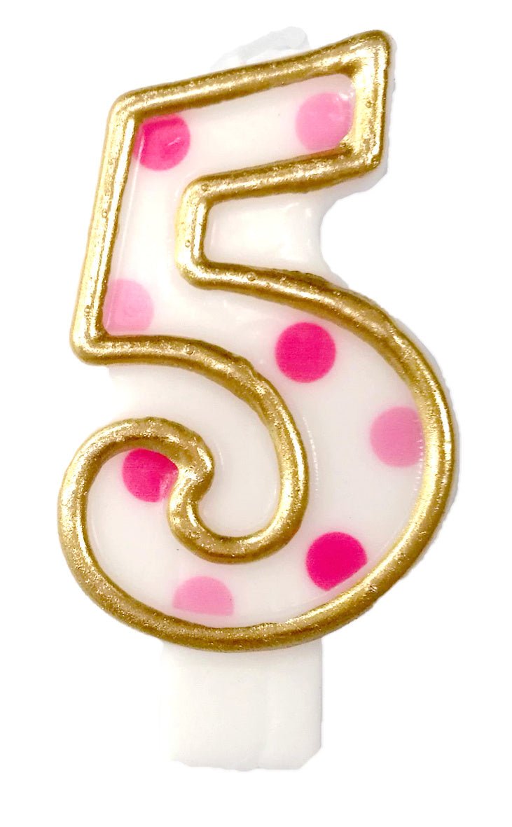 Kerze 5 Jahre Rosa Punkte 8,5cm