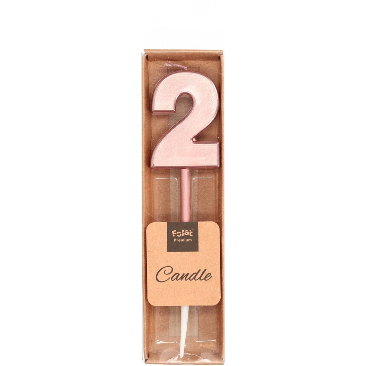 Kerze Nummer 2 Rose Gold Metallic. Inhalt: 1 Kerze. Farbe: Roségold. Kann zum Beispiel bei folgenden Anlässen verwendet werden: Geburtstag, Jahrestag und Kinderfest. Maße: 14 cm hoch. Der Artikel ist aus Wachs hergestellt.