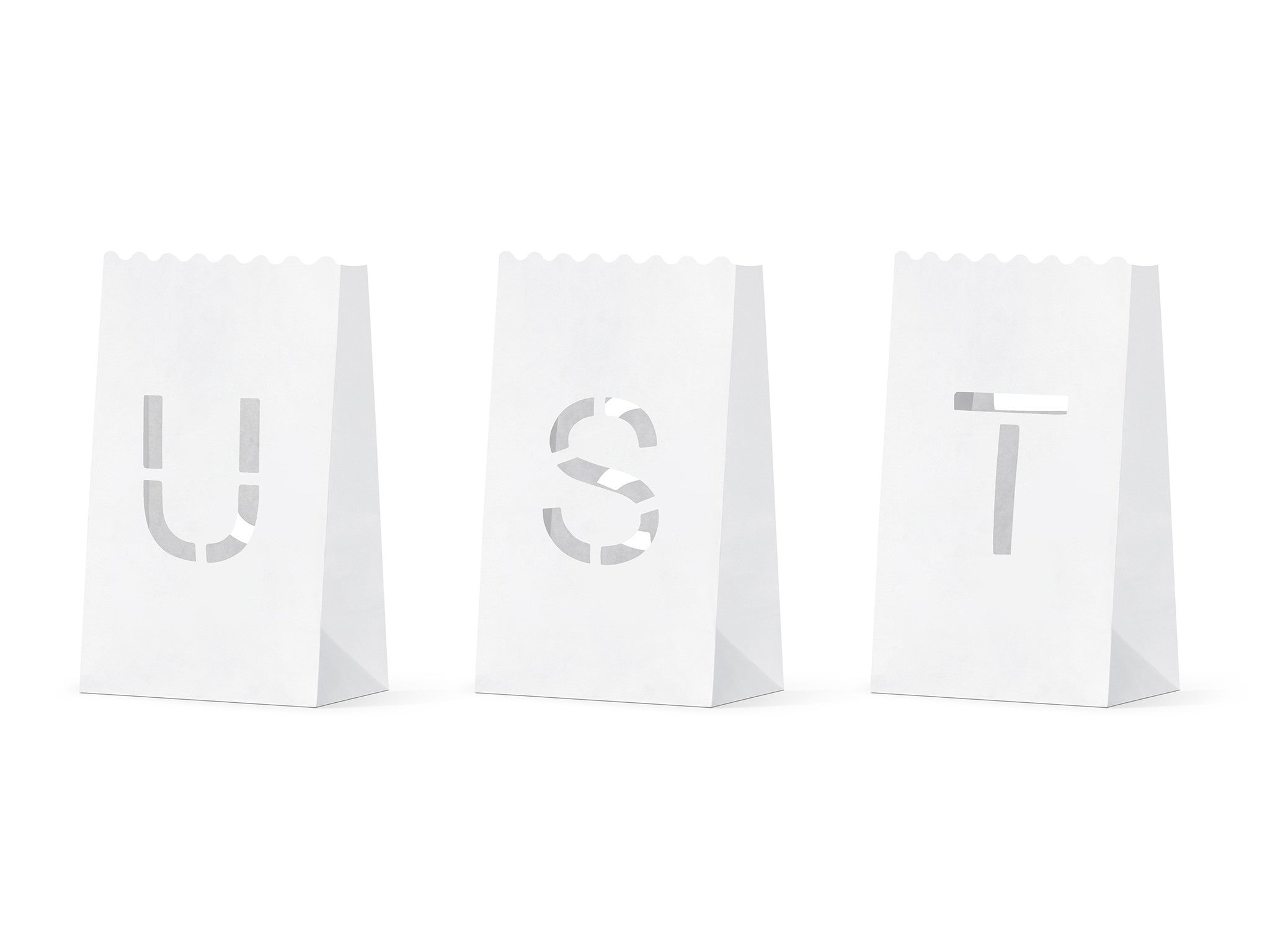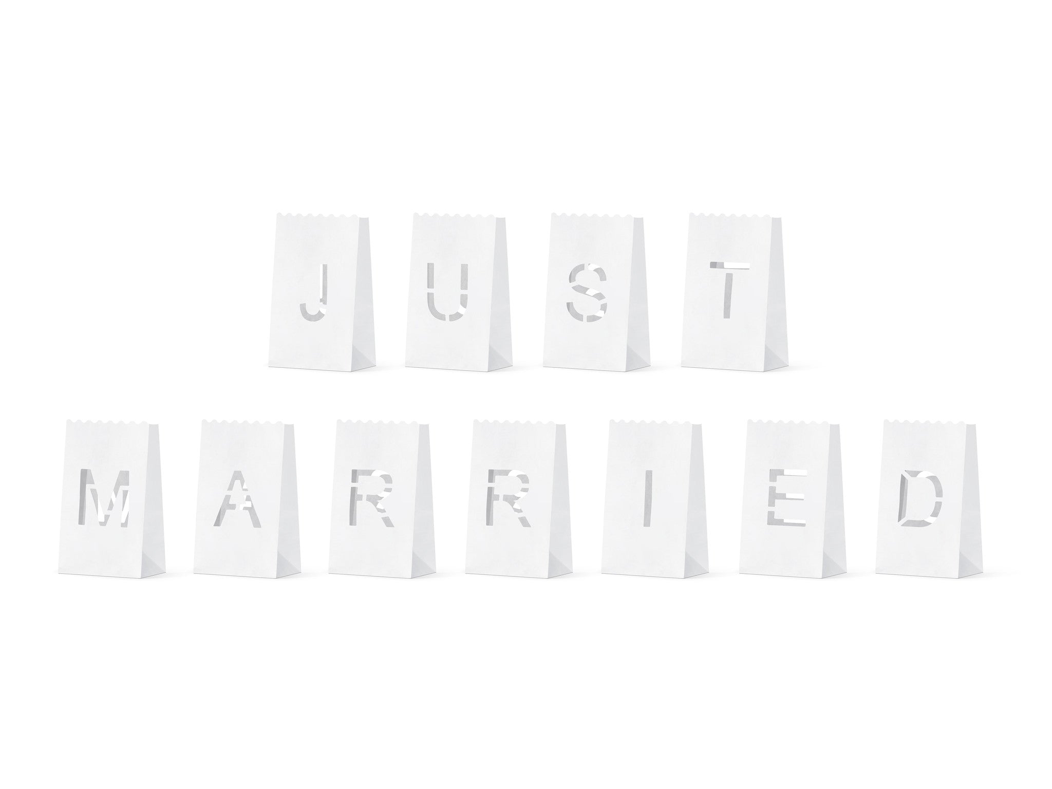 Inhalt: Kerzentüten Kerzentüten, Set enthält 11 Laternen mit geschnitzten Buchstaben, die die Inschrift Just Married bilden. Größe nach dem Entfalten ca. 11,5 x 19 x 7 cm. Das Produkt besteht aus nicht brennbarem Papier.(1 Pkt/11 Stk.)