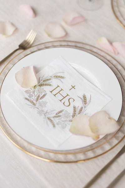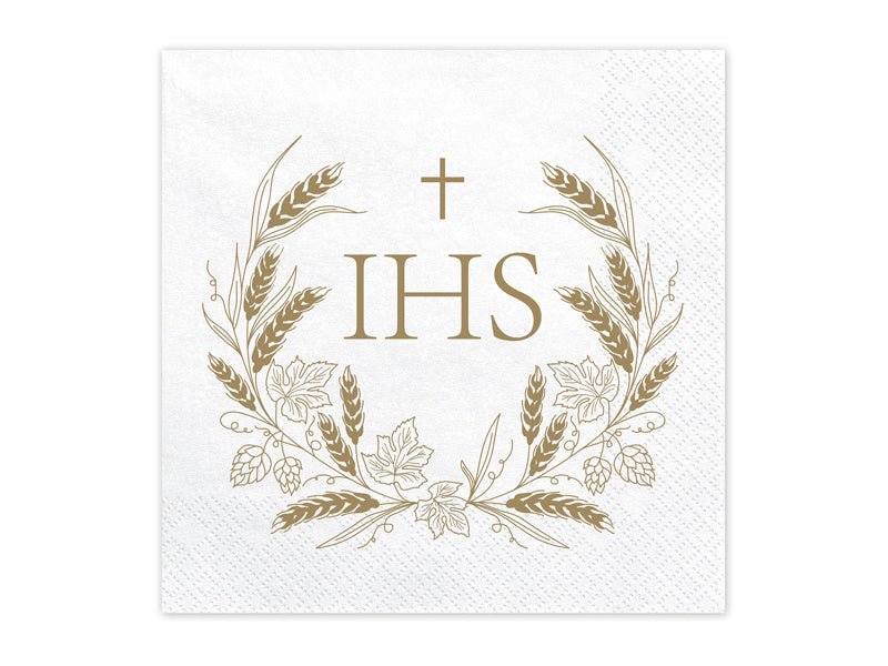 Papierservietten IHS in Weiß mit Golddruck, Größe nach dem Entfalten ca. 33 x 33 cm, Größe nach dem Falten ca. 16,5 x 16,5 cm. (1 Pkt/12 Stk.)
