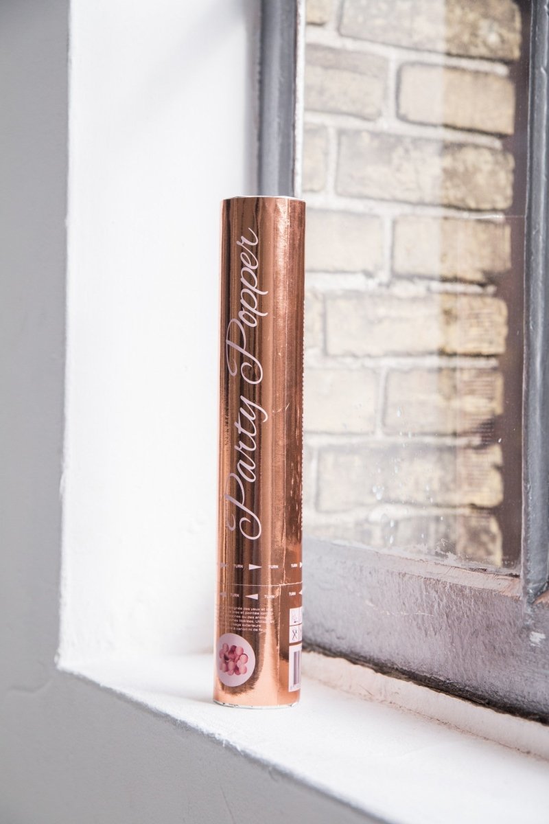 Konfettikanone Rose Gold - 28cm. Inhalt: 1 Konfettikanone. Farbe: Roségold. Zum Beispiel zur Verwendung bei folgenden Anlässen: Geburtstag, Kinderfest oder Jubiläum. Der Artikel ist 28 cm lang. Das Konfetti ist aus Folie hergestellt.