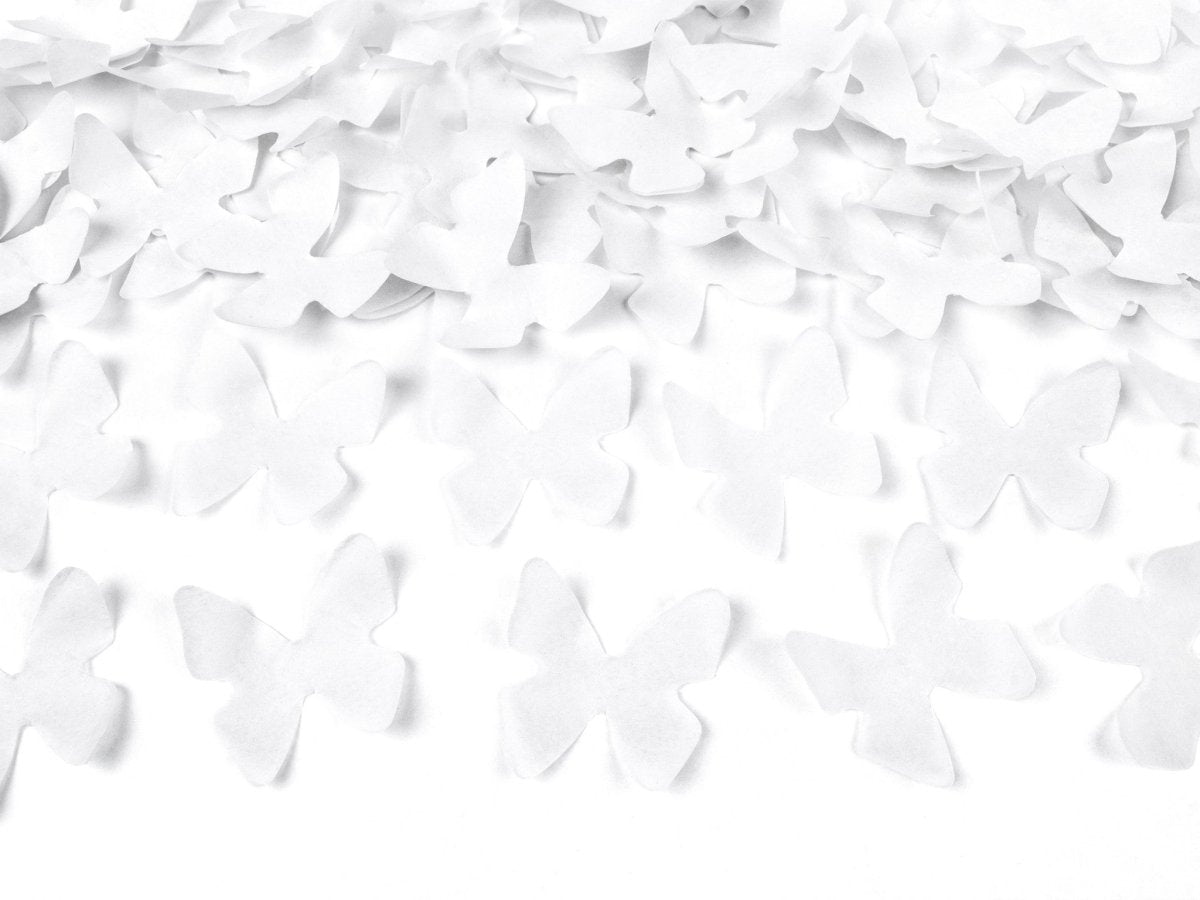 Inhalt: Konfettikanone, die weiße Schmetterlinge herausschießt, Länge 40 Zentimeter.