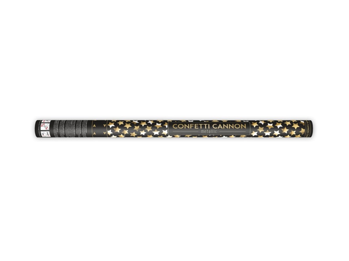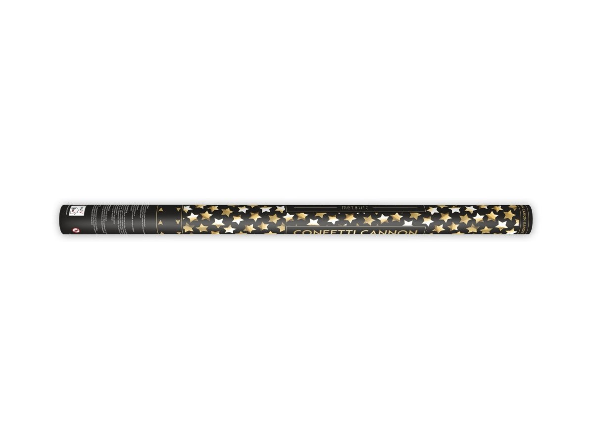 Inhalt: Konfettikanone, die metallische Sterne abschießt, gold, Länge 80 Zentimeter.