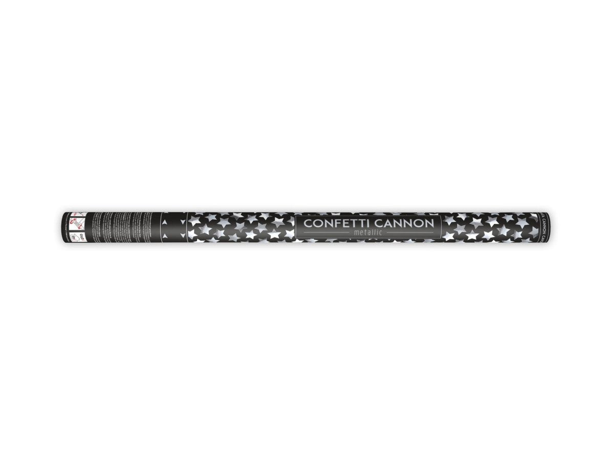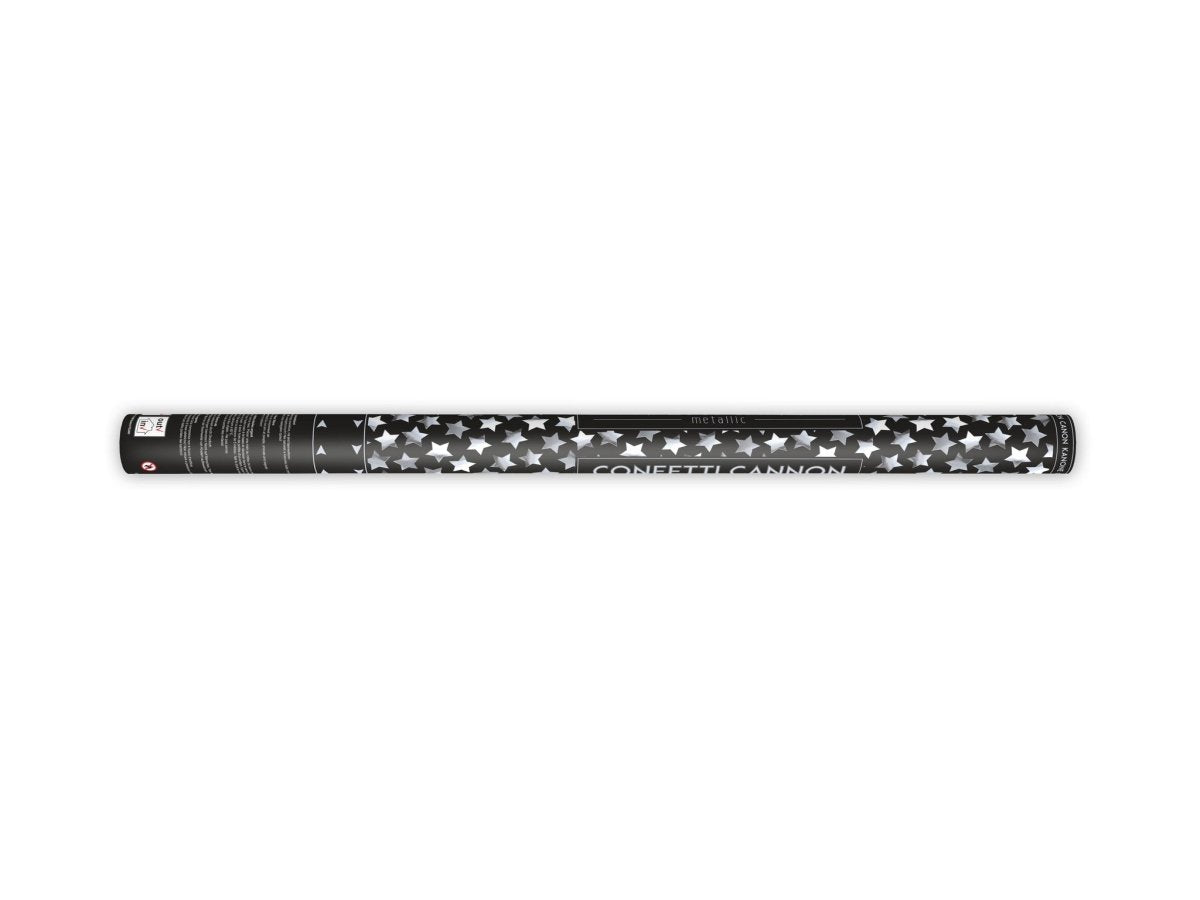 Inhalt: Konfettikanone, die metallische Sterne abschießt, silber, Länge 80 Zentimeter.