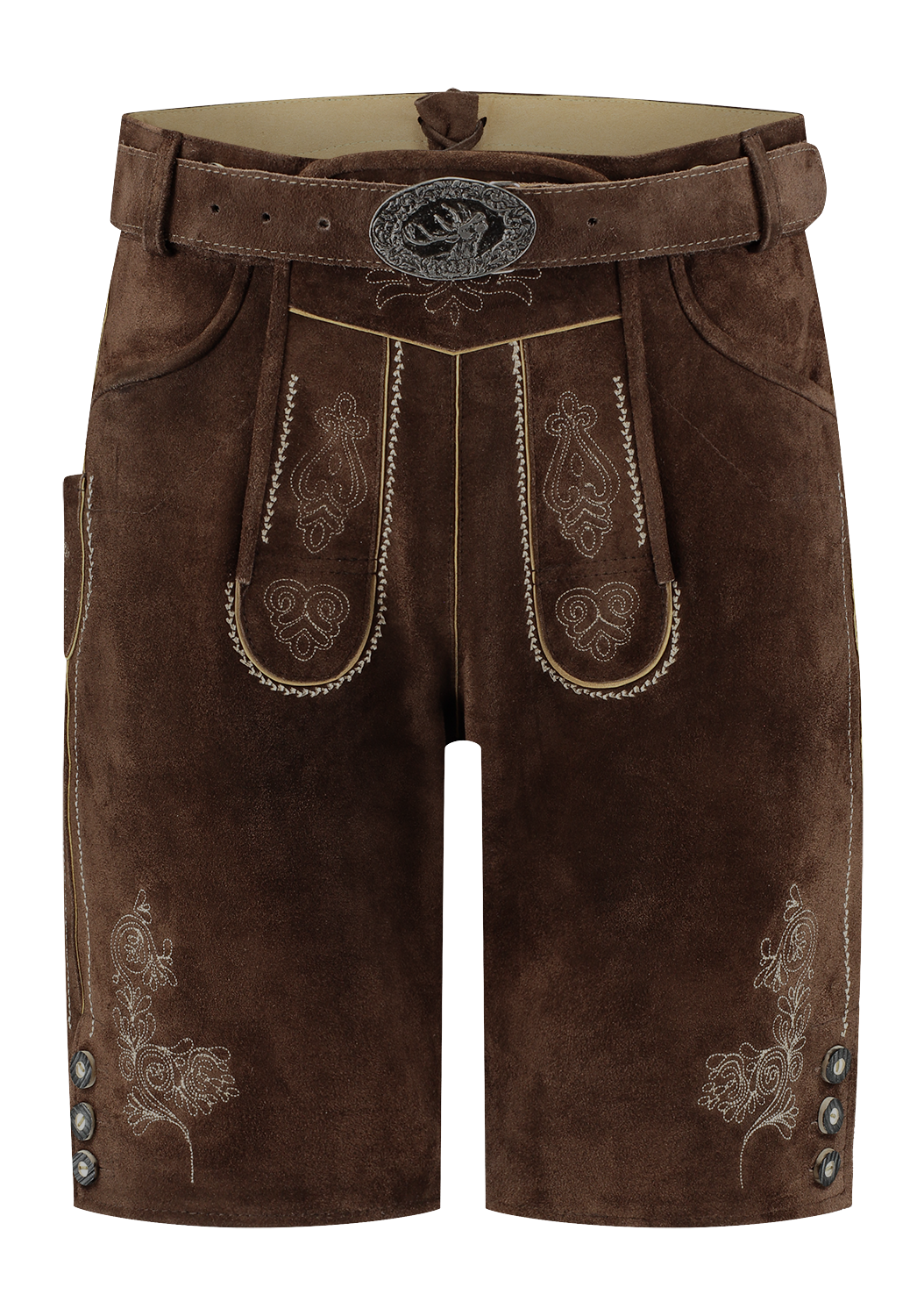 Mehrere Taschen vorne und hinten und echte Hirschhorn-Beinknöpfe treten auf.
