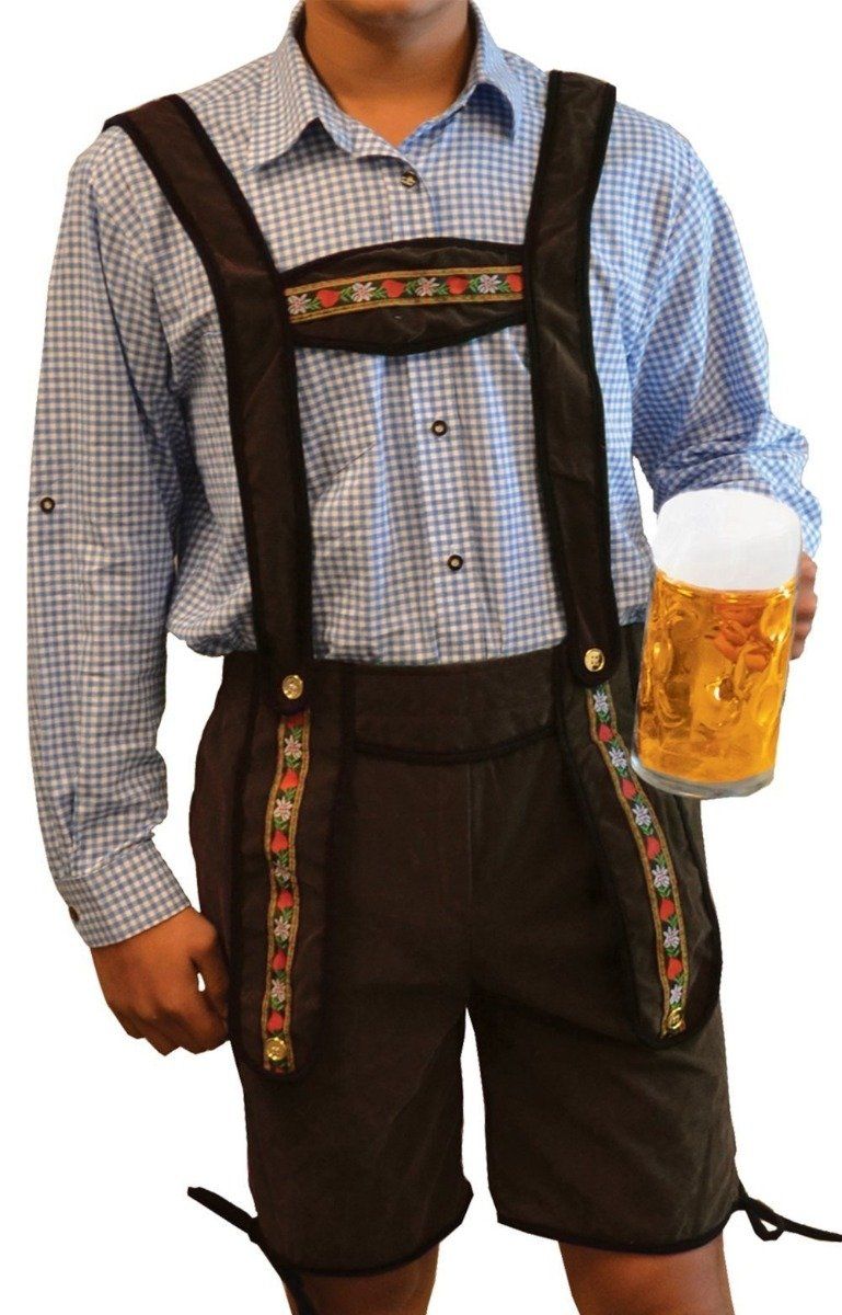 Lederhose Dunkelbraun Kurz + Bluse Blau