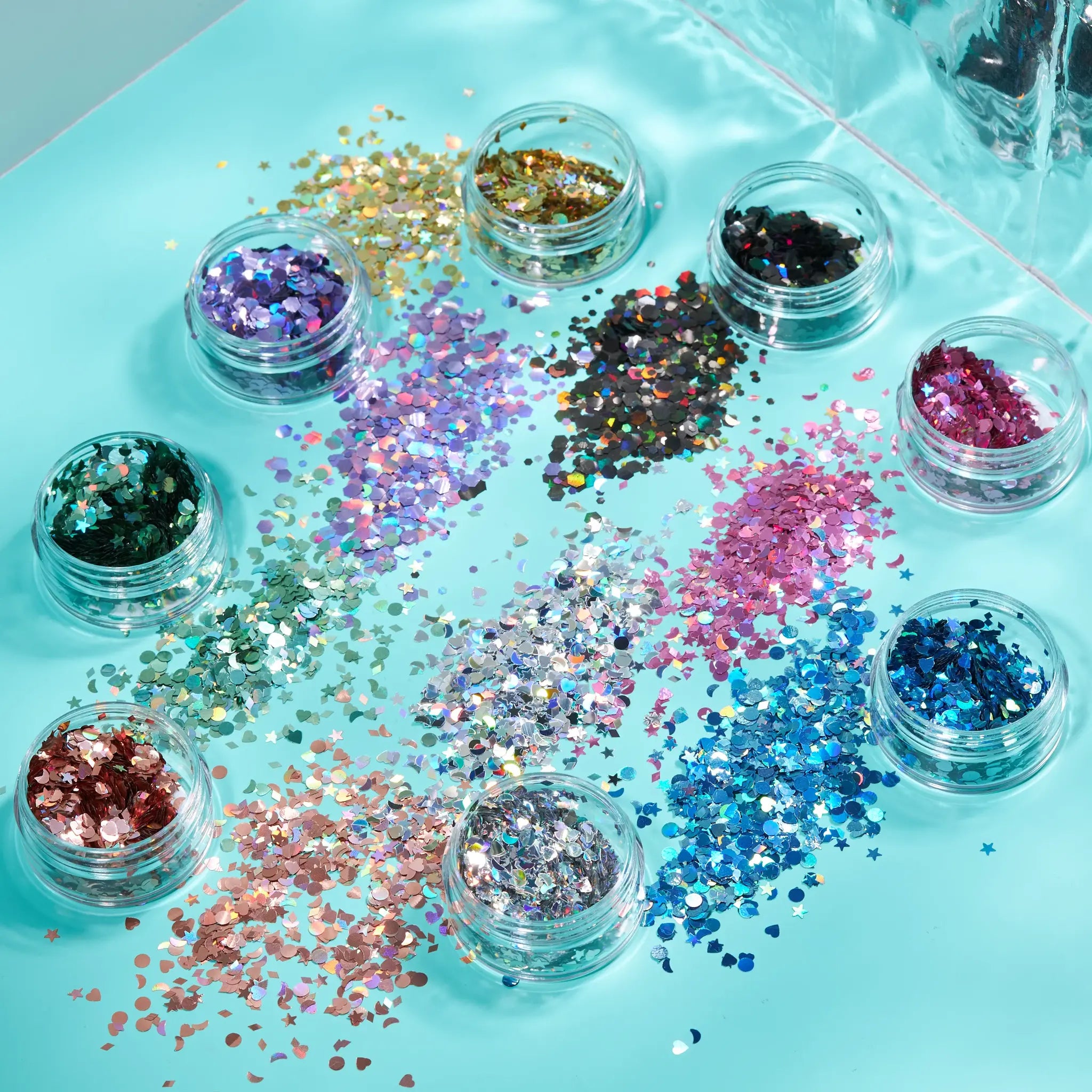 Mit unseren holografischen Glitzerformen kannst du eine zusätzliche Dimension hinzufügen. Sterne, Tupfen, Herzen, Halbmonde und Karos. Unsere Glitter sind von kosmetischer Qualität und können daher unbedenklich auf Gesicht, Haare und Körper aufgetragen werden und lassen sich ganz einfach mit Wasser entfernen.