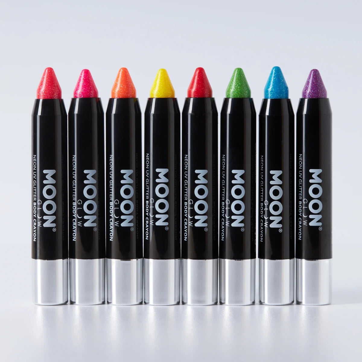 Moon Glow Neon UV Glitter Body Crayons sind ein Muss, um auffällige Looks zu kreieren, die tagsüber neonfarben leuchten und nachts unter UV-Licht oder Schwarzlicht glühen. Egal wo du bist - ihre Starqualität stiehlt dir die Show.
