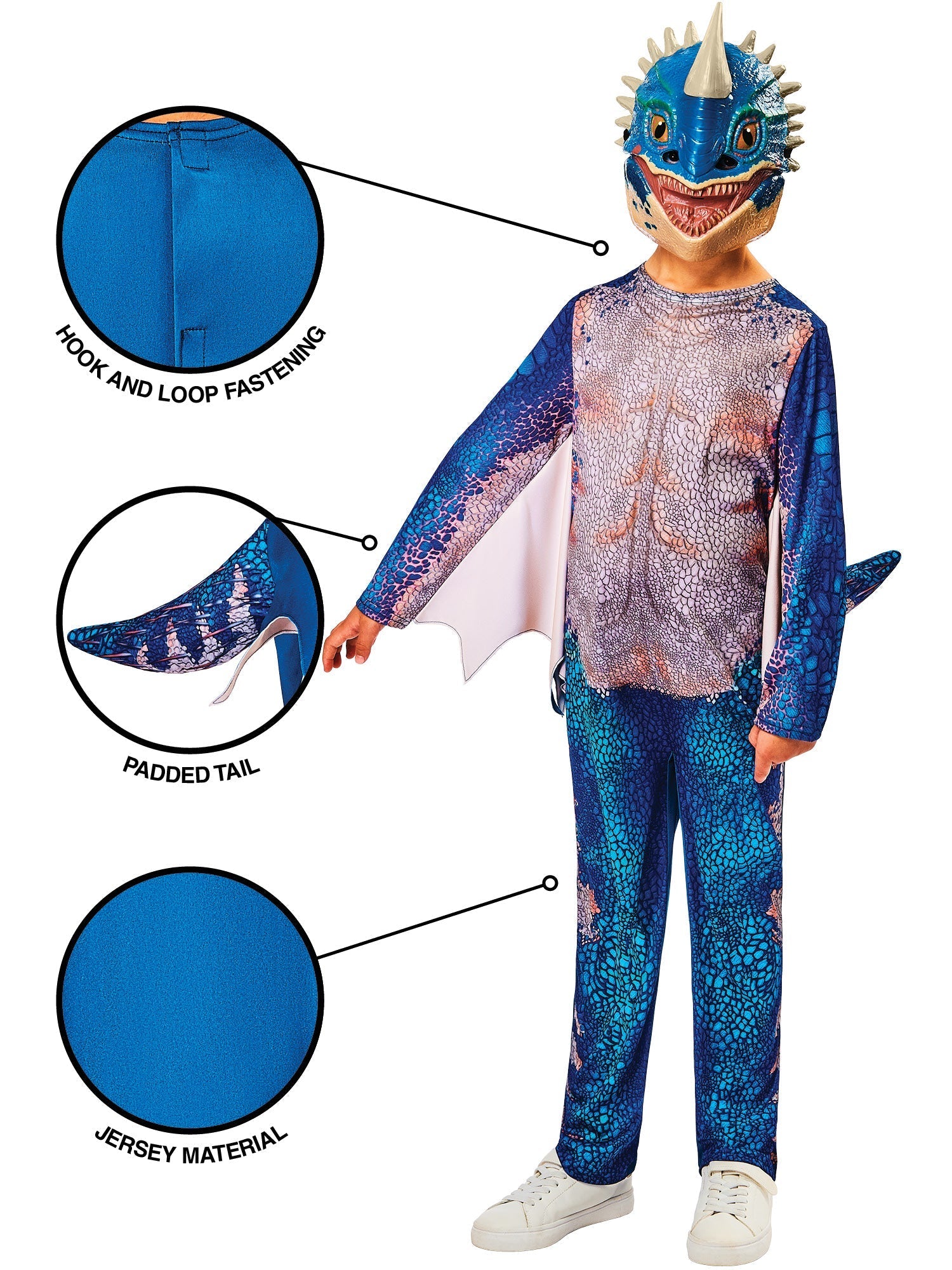 Fliege über die Berge als Nadder, der kultige Drache aus der brandneuen Realverfilmung von How to Train Your Dragon! Dieses detailreiche Kostüm besteht aus einem hochwertig bedruckten Overall, angebrachten Flügeln, einem Schwanz und einer passenden Maske, die mit vielen 3D-Details versehen ist. Perfekt, um sich wie ein echter Drache in die Lüfte zu schwingen.