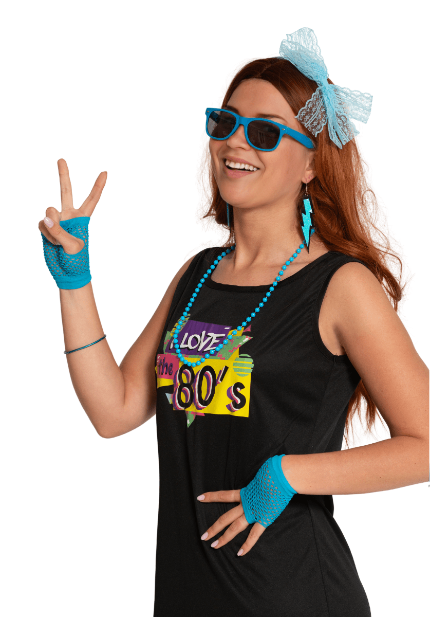 Neon 80S Accessoire Set Blau 6-teilig