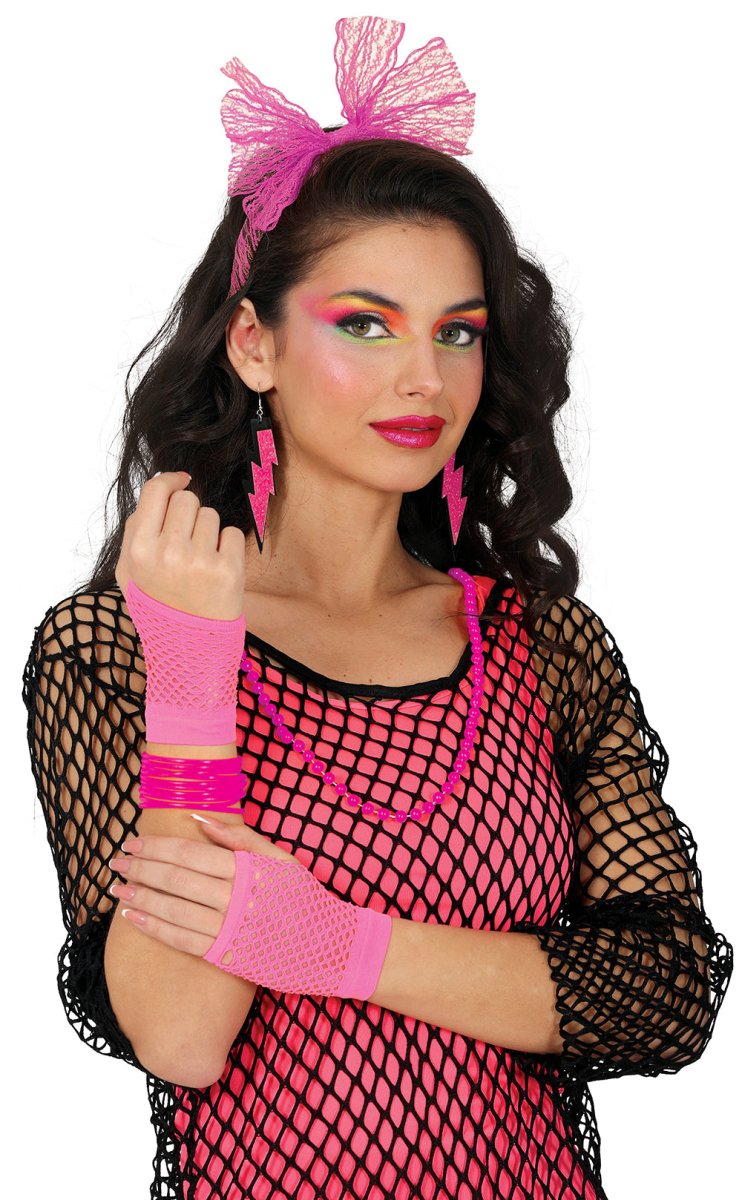 Neon 80S Accessoires Set Bright Pink 5 Stück