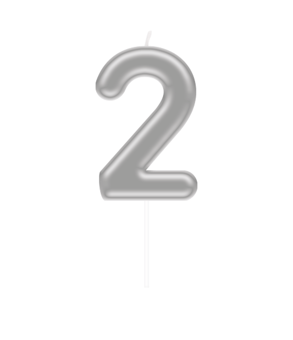 Feiere jeden Meilenstein stilvoll mit dieser silbernen Zahlenkerze "2". Perfekt, um Altersstufen, Jahrestage oder andere besondere Anlässe zu markieren. Die glänzende silberne Farbe lässt die Kerze auf jedem Kuchen oder Cupcake hervorstechen.