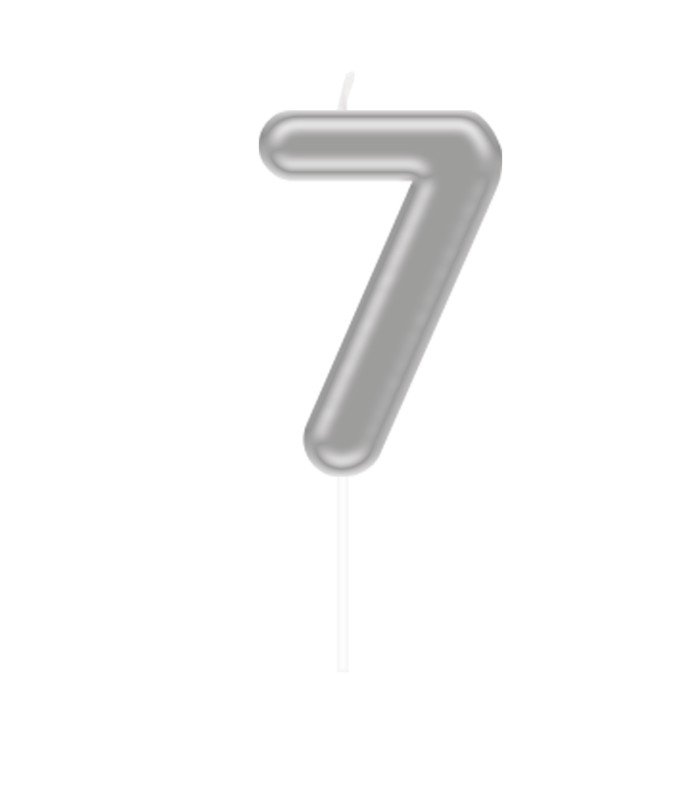 Feiere jeden Meilenstein stilvoll mit dieser silbernen Zahlenkerze "7". Sie eignet sich perfekt zum Markieren von Altersstufen, Jahrestagen oder anderen besonderen Anlässen. Die glänzende silberne Farbe lässt die Kerze auf jedem Kuchen oder Cupcake hervorstechen.