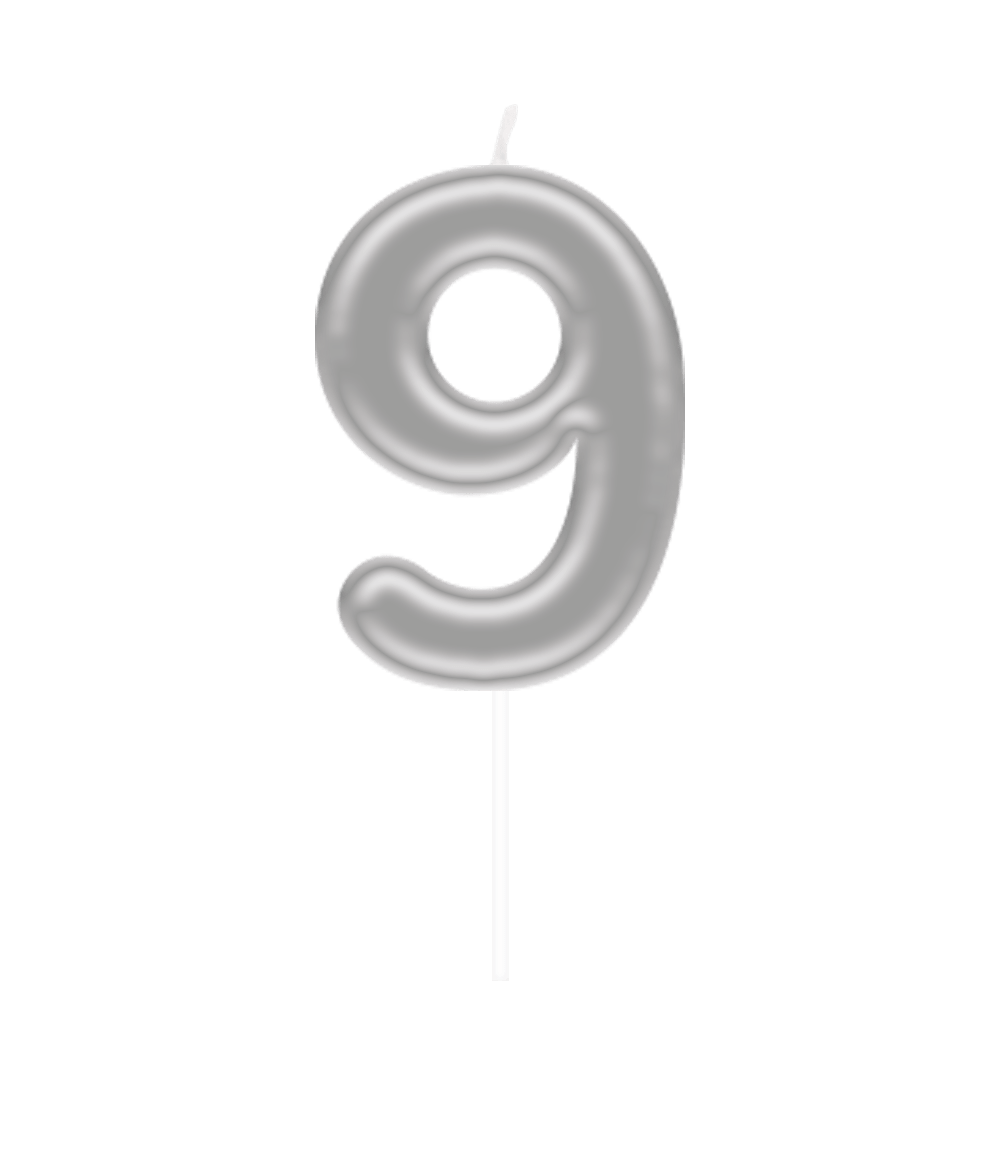 Feiere jeden Meilenstein stilvoll mit dieser silbernen Zahlenkerze "9". Perfekt, um Altersstufen, Jahrestage oder andere besondere Anlässe zu markieren. Die glänzende silberne Farbe lässt die Kerze auf jedem Kuchen oder Cupcake hervorstechen.