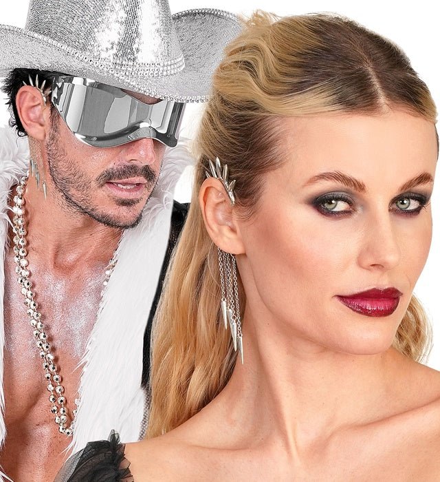 Diese silberne Ohrmanschette mit Spikes ist ein cooles Accessoire für einen kantigen und rebellischen Look. Perfekt zu kombinieren mit Punk, Rock, Gothic oder Carnival Outfits.