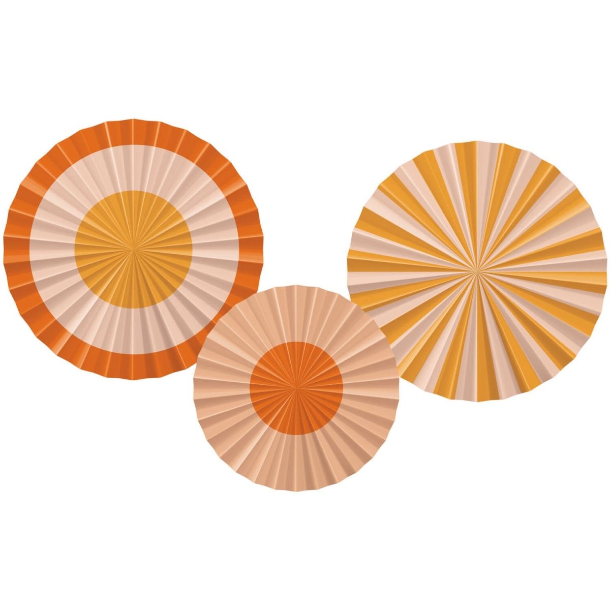 Feiere "pretty peachy"! Deco Fan Set - Pretty Peachy - 3 Teile. Inhalt: 3 Dekorationsfächer. Zum Beispiel für die folgenden Anlässe: Geburtstag, Mottoparty. Sonnige Dekofächer mit verschiedenen Mustern in verschiedenen Orange-Gelb-Tönen. Es gibt zwei große Exemplare mit einem Durchmesser von 35 cm: ein gestreiftes Exemplar in 2 Gelbtönen und eines mit 3 orange-gelben Farbtönen. Plus eine kleinere Größe mit 25 cm Durchmesser: 2 Orangetöne. Die Ventilatoren sind zusammengeklappt verpackt und können vor dem Gebrauch leicht aufgeklappt werden. An jedem Fächer ist eine Baumwollschnur befestigt, um den Fächer aufzuhängen. Mit Büroklammern, um die Fächer in runder Form zu halten. Beidseitig bedruckt. Dieser Artikel ist aus FSC-Papier hergestellt.