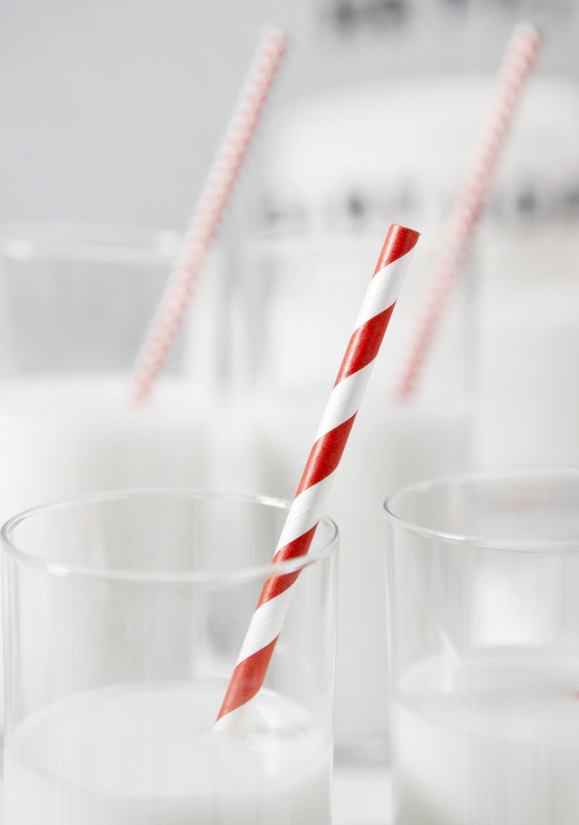 Inhalt: Papierstrohhalme, rot mit geheilten, weißen Streifen, Länge ca. 19,5cm. (1 PKT/10 Stück)