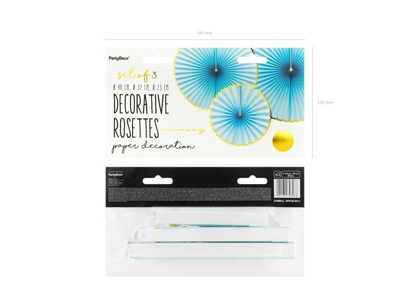 Beschreibung Bewertungen Über dieses Produkt Verpackungsinhalt:Papierfächer Hellblau Gold Set 23-40cm 3 StückAnzahl: 3 StückDurchmesser: 1x 40cm 1x 32cm 1x 23cmFarbe: Hellblau/GoldMaterial: Papier Trustpilot