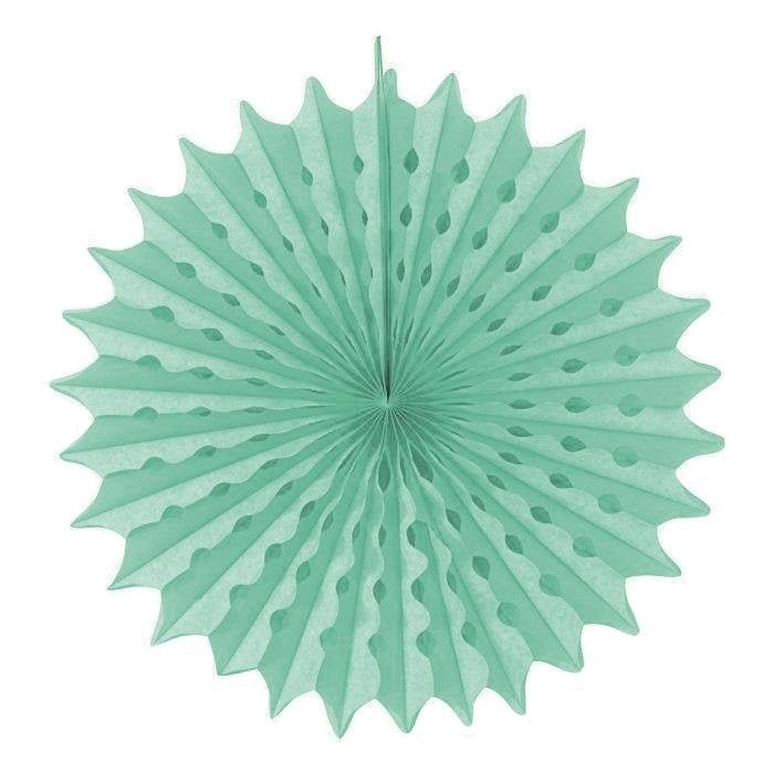 Wabenfächer Mintgrün - 45cm. Inhalt: 1 Wabe. Farbe: Grün. Kann zum Beispiel für folgende Anlässe verwendet werden: Mottoparty, Geburtstag, Kinderfest. Diese Dekoration ist 45 cm lang. Eine Wabe ist aus Papier hergestellt.