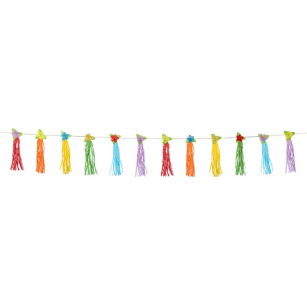 Mit der farbenfrohen Hawaii Quastengirlande bringst du tropische Hula-Vibes auf deine Party. Die farbenfrohen Quasten kombiniert mit tropischen Blumen sorgen für einen festlichen und sommerlichen Look. Perfekt für Gartenpartys, Strandpartys oder eine Party mit hawaiianischem Thema.