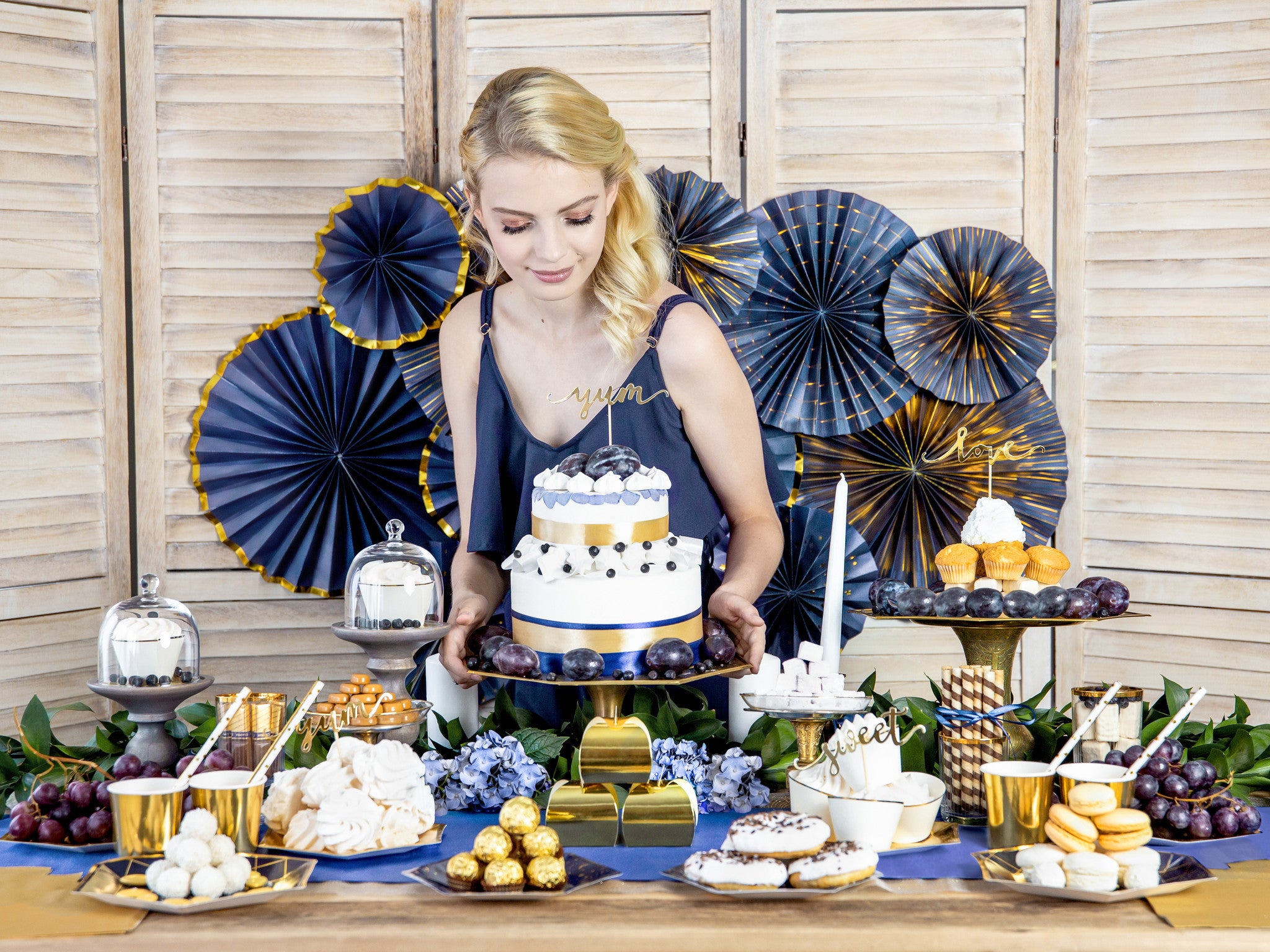Inhalt:Papierfächer Dunkelblau Gold Set 23-40cm 3 Stück