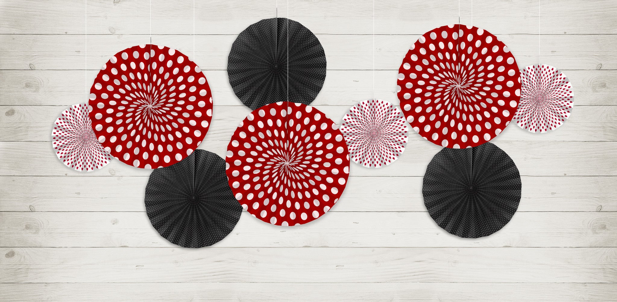 Papierfächer Rot Schwarz Set 23-40cm 3 Stück