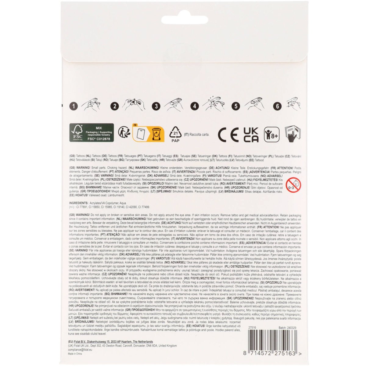 Für echte Pferdefans! Tattoos - Happy Horses - 25 Stück Inhalt: 1 Tattoo-Aufkleberbogen mit 25 Tattoos. Zum Beispiel zur Verwendung bei folgenden Anlässen: Kinderparty, Geburtstag, Mottoparty. Supersüße Fake-Tattoos für echte Pferdefans. In der Packung befindet sich 1 Tattoo-Aufkleberbogen mit 25 Tattoos. Auf der Rückseite der Packung steht, wie man die Tattoos verwendet. Die Größe des Aufkleberbogens beträgt 14 x 21 cm. Diese Tattoos gehören zu der Happy Horses Kollektion von