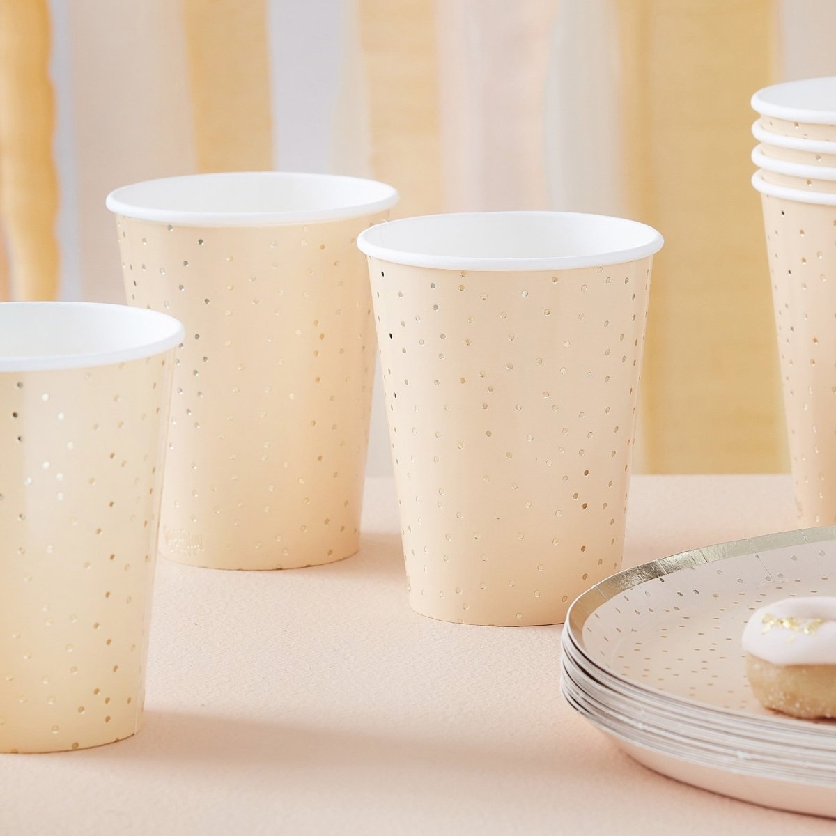 Pfirsichfarbene Becher mit goldenen Punkten 266ml 8 Stk
