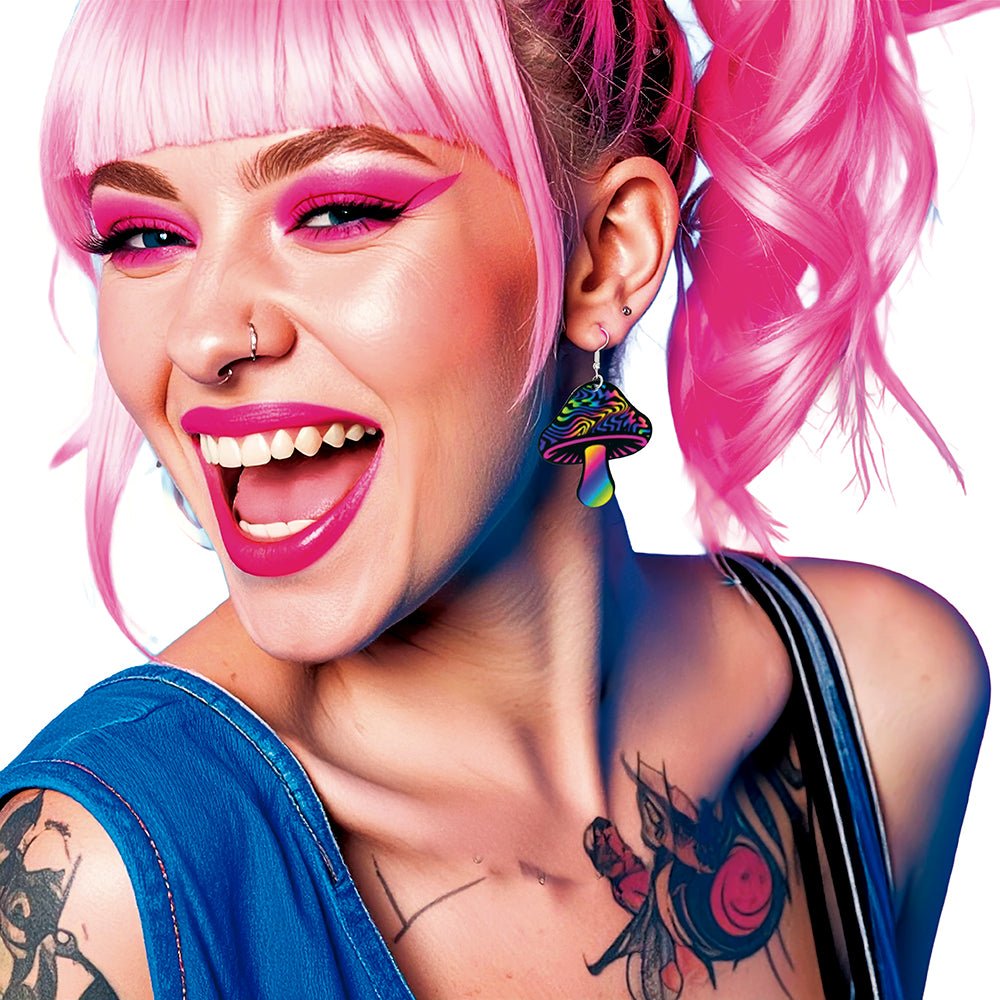 Verleihe deinem Outfit einen verspielten Touch mit diesen fröhlichen Mushroom-Ohrringen. Die Ohrringe haben ein pilzförmiges Design in Schwarz, Rosa, Blau und Grün. Ideal für Festivals, Mottopartys oder als auffälliges Modeaccessoire. Sie sind leicht und bequem zu tragen.
