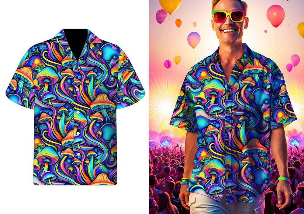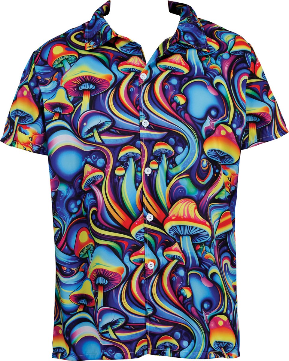 Mit dieser leuchtenden Psychedelic Shrooms Bluse in Blau, Grün und Orange fällst du auf. Die auffälligen Farben und das einzigartige Muster verleihen dem Hemd einen echten Retro-Look, perfekt für Mottopartys, Festivals oder Karneval. Hergestellt aus leichtem und geschmeidigem Polyester für optimalen Komfort und Bewegungsfreiheit.