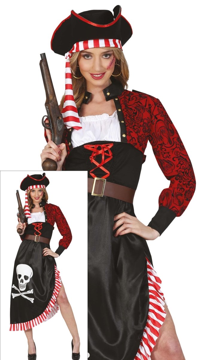 Piratenkleid Rot Schwarz Damen