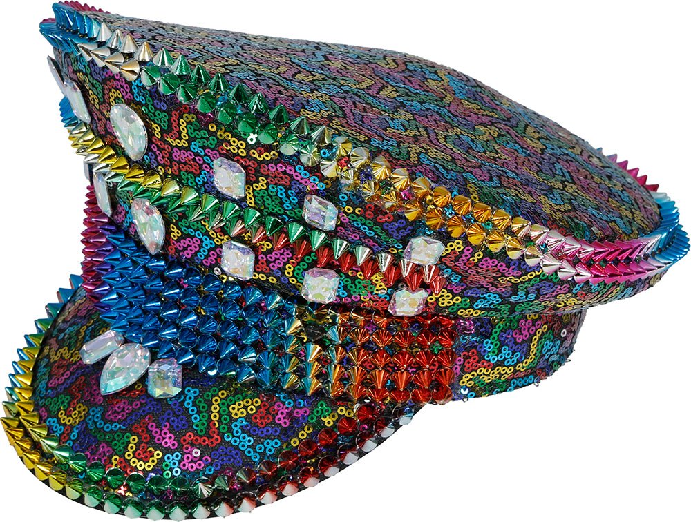Mehrfarbige Polizeimütze mit Nieten, Erwachsene