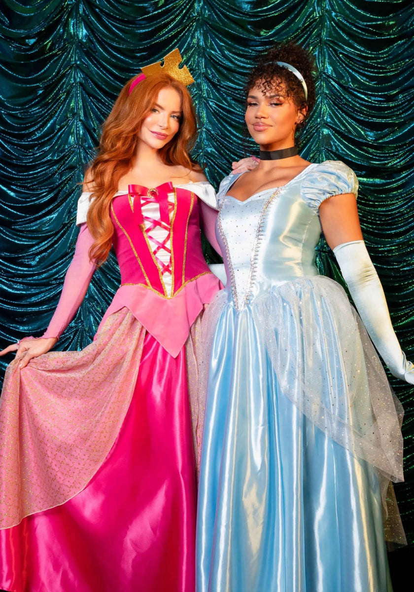 Sei die schönste schlafende Prinzessin mit diesem zweiteiligen Prinzessin Aurora Kostüm von Leg Avenue! Dieses märchenhafte Set besteht aus einem klassischen Ballkleid aus Samt und Satin mit nackten Schultern, einem schillernden Rock aus Glitzer-Tüll und durchsichtigen langen Ärmeln. Das Kleid hat einen Reißverschluss auf der Rückseite und ist mit einer goldenen Krone versehen. Perfekt für Halloween, Karneval oder den Büchertag! 📚🎭