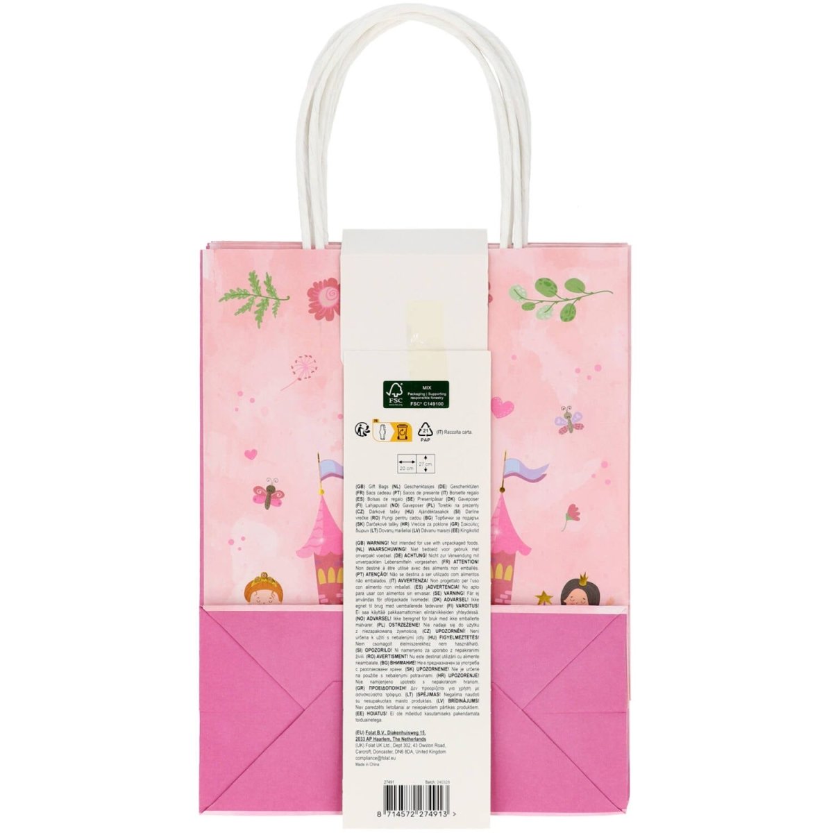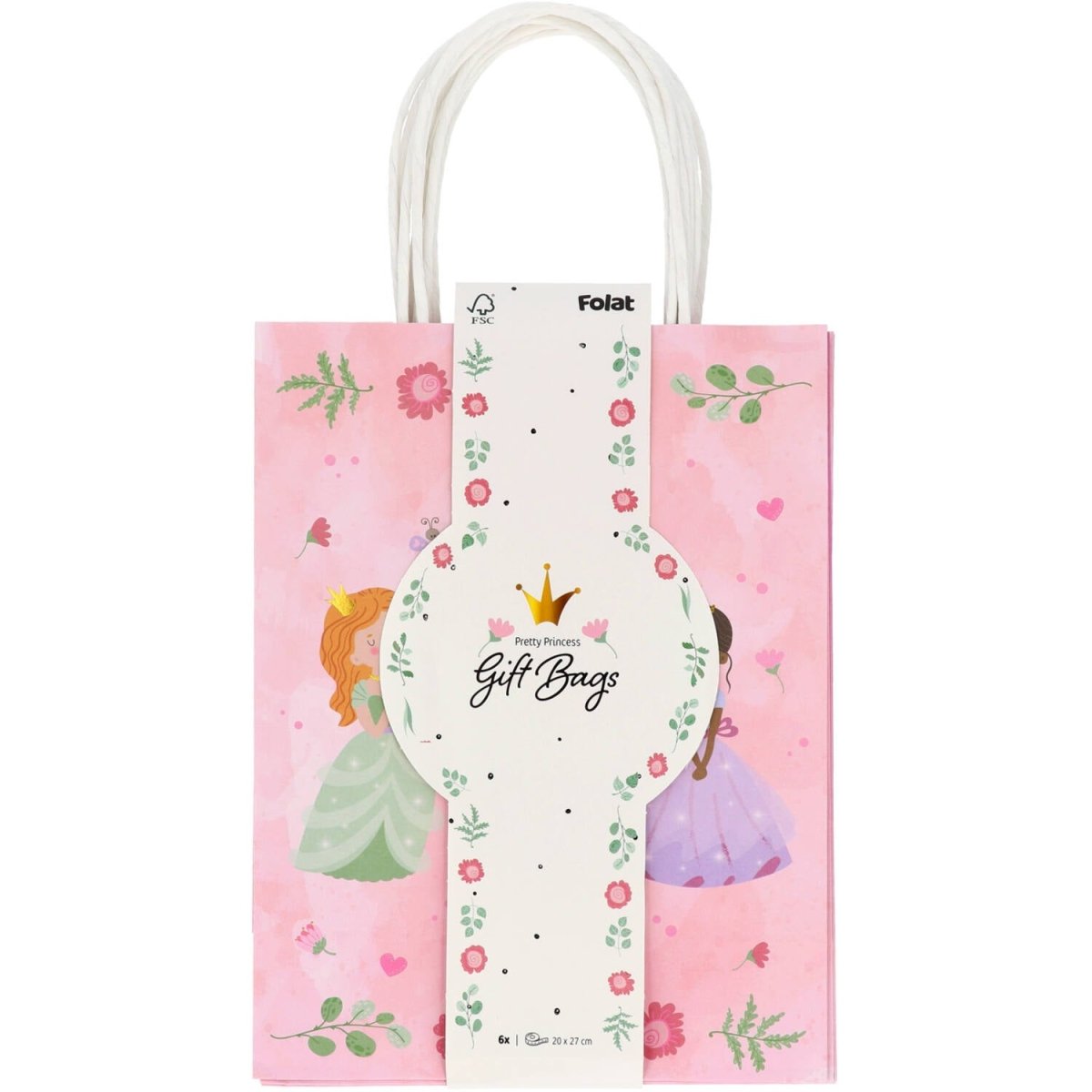 Für königliche Geschenke. Geschenktüten - Pretty Princess - 20 x 27 cm - 6 Stück. Inhalt: 6 Geschenktüten. Kann zum Beispiel bei folgenden Anlässen verwendet werden: Kinderfest, Geburtstag. Hübsche Geschenktüten mit den Maßen 20 x 27 x 10 cm. Zartes Rosa mit zwei Prinzessinnen und dem Text "HAPPY BIRTH DAY" auf der einen Seite und einem Schloss mit zwei Prinzessinnen auf der anderen Seite. Inklusive Henkel sind die Taschen etwa 37 cm hoch. Mit goldenen Details, die dank der verwendeten Heißprägetechnik richtig funkeln. Diese Geschenktaschen gehören zu der Pretty Princess Kollektion von