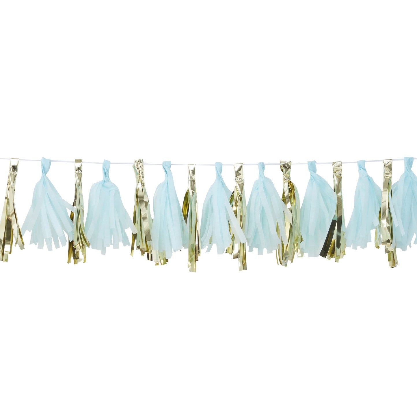 Unsere blau-goldene Girlande mit Quasten ist eine tolle Möglichkeit, eine Party stilvoll zu gestalten. Die goldenen Quasten funkeln hell durch den Raum und werden durch die schönen babyblauen Quasten ausgeglichen. Eine bezaubernde Dekoration für eine anspruchsvolle Babyparty! Alle werdenden Mütter werden diese Partygirlande lieben.